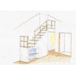 固定階段を設ける分、床面積が狭くなるため、最大限に活用できるよう、階段下にも棚やハンガーパイプなど収納を設けました。