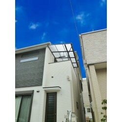 (旧京都建物株式会社(京都建物工務店リフォーム)での事例です。)バルコニーに屋根を取付させていただきました。 ベランダスペースの保護、外壁や窓まわりの雨の吹込みも防止することができます。 これで突然雨が降っても安心ですね。