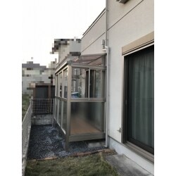 リビングから続くお庭に、サンテラスを作りたい。洗濯物を干す部屋にしたいとのご要望でした。