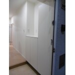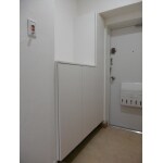 あまり配置は変わりませんが、以前の引戸に比べ収納内の奥行きが広くなり、高さも少しプラスしました。端までぴったり扉付のユニットを取付け、玄関まわりの物は扉内に仕舞えるようにしました。