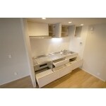 独立キッチンを辞め、リビングと一体させる事で開放感が出て広々とした空間が実現できます。キッチンはI型を採用して余分なスペースを取らないようにし、豊富な収納力があるキッチンにすれば、家財に溢れる心配もありません。