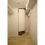 洗濯物干しを設置して広々空間を有効活用。