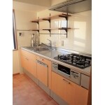 ご予算の範囲で、奥様と綿密なご相談をさせていただきました。キッチンの吊り戸を無くし、無垢の木×アイアンブラック金具で、お洒落な飾り棚を設置ご希望。浄水器は既存を使用、食洗機設置などのご要望を取り入れました。 クッションフロアーは、奥様のご提案で、テラコッタタイル柄で南欧風に。