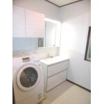 壁から壁にピッタリの洗面台。洗濯機廻りのリフォーム工事