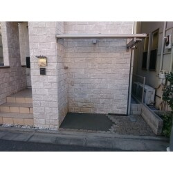 花壇をコンクリートで埋めて屋根付きの駐輪場を設置しました。