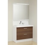 洗面台の機能性を重視しながら、幅を抑えました。ミラーキャビネットや本体収納で元々の物から小さくなりましたが、収納力をなるべく変えずに収納できるようにしました。さらに省エネを考えたエコハンドルを採用!洗面器にもこだわり、サイドにものが置けるようにウェットパレットやドライパレットで利便性を追求しております。壁付け水栓で広さからお手入れも簡単です。