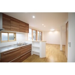 キッチンは最新のキッチンを導入。手前にカウンターを設ける事で独立した空間を保てます。またサッシは全て断熱サッシへ取り替えました。以前より夏は涼しく、冬は暖かく、省エネ効果も期待できます。