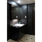 今回スタイリッシュなデザインの洗面化粧台をご提案させて頂きました。 壁紙から設備機器などブラック系で揃えおしゃれになりました。