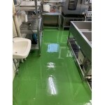 下地処理を行い下地調整のカチオン材を塗布。その後エポキシ樹脂を塗布しトップコートを行いました。仮設養生も丁寧に行って作業しました。