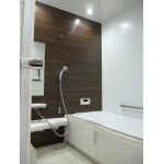 浴室乾燥機付きのユニットバスで温度調整も可能にして浴室のまたぎを低くして、床を滑りズラく。将来性を考えた設備をご提案。