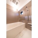 壁は木目調で、ゆったりと温かいバスルームになりました。