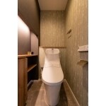 クロス、床も変え間接照明をつけました。 収納スペースも新たに造作し、落ち着いたトイレになりました。