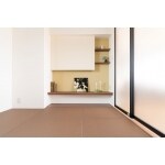 部屋干しの洗濯物の目隠しになったり、机を置いて簡単な書斎になったり。タイルの壁を作ったことで、リビングで可能なことが増えます。