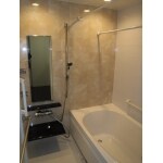 壁の色に合わせてランドリーパイプは白をご選択、浴室換気乾燥暖房機も新規交換。 照明がダウンライトになり、さらに高級感あふれる空間になりました。