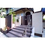 また、玄関ポーチ部分は急な段差を穏やかにし、手すりも付けたので階段の昇り降りが容易になり安心です。スクリーンブロックでアクセントのつけた塀にしたことで室内から見ると空間のメリハリができました。