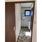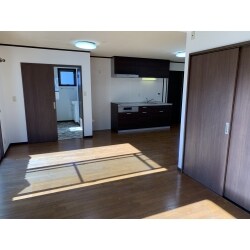 洋室(1)をLDKと合わせて広いLDKに間取りを変更しました。 キッチンが在った場所に、浴室と洗面室を造りました。 キッチンは位置を移動させて新設。