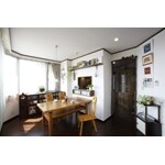 | その他採用機器・設備 | リビング・ダイニング(パナソニック電工)、ダイニング棚・開口収納棚(造作)、リビング建具(アンティーク建具仕様変更)、リビング(ポーターズペイント) |