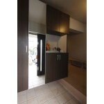 Panasonic製のコンポリアを提案しました。また、収納下に間接照明を入れてお洒落な玄関を演出しました