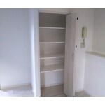 壁を造作しクローゼットを設置しました。 開き戸タイプで、中は収納棚を5段にして、小物を収納しやすくしました。
