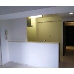 下がり壁と袖壁があり、電気をつけないとキッチンは暗く狭い印象でした。
