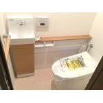 トイレはタンクレスで省スペースになり、手洗器が別置きのため、ラクな姿勢で手が洗えるようになりました。トイレとクロスは白にして、明るいトイレになりました。