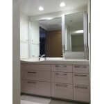 施主様の理想は“ホテルのような上品で落ち着いた雰囲気”。 洗面台の顔である扉の色は、優しい印象のサテンピンクを選ばれ、床は珊瑚石をイメージした上品な柄のフローリングを貼りました。カウンターは、継ぎ目のないスタイリッシュな形の人造大理石一体型カウンターを選ばれ、グラニットホワイトで高級感をプラスしています。 リフォーム後に「見た目にこだわったのでイメージ通りで満足です。また、曲線の洗面ボウルが水ハネしなくてお手入れも楽なので、とても使い勝手が良いです!」とお喜び頂けました。