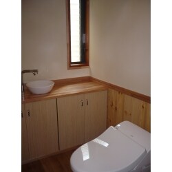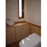 冷たい印象のタイルを撤去し、木をふんだんに使い温かみのあるトイレに変身しました!