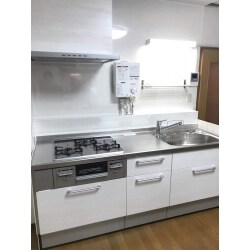 湯沸かし器を利用しているお宅で、以前は湯沸かし器から直接お湯を使用していました。今回のリフォームでシステムキッチンの蛇口からお湯を出せるように施工し、スッキリとしたキッチンに仕上げました。