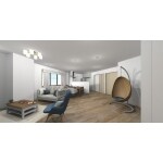 キッチンからLDKをみて。 リビングの正面にはアクセントクロスを貼り分けました。 奥には洋室2部屋の扉があります。LDKを中心に間取りを配置しています。 キッチンに立てば家族の様子がわかるような間取りです。