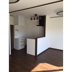 キッチンを移動して対面キッチンにした。リビング側とコミュニケーションが取りやすくなった。