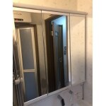明るさと収納を重視とのご希望でしたので、TOTOのKZシリーズ 3面鏡 ワイドLEDの商品を提案させていただきました。 照明部分が横幅いっぱいに、うすく設置されたワイドLED照明は、夜照明をONすると、すごく明るくさらに見栄えもきれいです。 3面鏡裏は全面収納になっており収納力抜群です。また2段引き出しタイプにしたため2枚扉タイプよりも整理や出し入れがしやすく機能的です。 見た目も機能性もお客様にご満足いただけたかと思います。