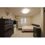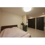 ご両親様の寝室は、白を基調としたシックなインテリアです。クローゼットの扉を漆黒にして、部屋全体を引き締めています。