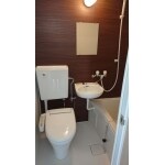 昔からある3点ユニットです。 年数も経っているので状態は悪くありませんが、古めかしい印象はあります。 給湯器は室内にありました。
