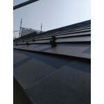 軽量で高い耐久性の上湿気や水に強い金属屋根(ガルバ鋼板)を平葺にて葺き上げました。雪止めを取付けています。