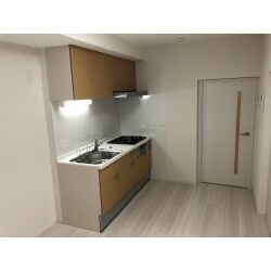 キッチンの外に、壁紙、床を張替え全体的に明るいお部屋にリフォーム。新しいキッチンは操作性も良く使い勝手が向上しました。