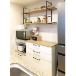 お引越し前のご自宅にて、お手持ちの家具を拝見させて頂いたところ、北欧ナチュラルなテイストのとてもオシャレな家具をお持ちでした。それらの家具とのバランスを考えつつ、壁紙やカップボードのご提案をさせて頂きました。また、インテリアは見た目だけでなく、使い勝手も重要です。収納力や動線なども含め、ご相談をさせて頂きました。
