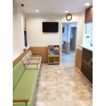 ・受付カウンター 135°V型の人工大理石カウンターを作成して、広く使えるように工夫しました。 カウンター上部には、お知らせなどを掲示できるようにマグネットパネルを施工しました。 ・待合スペース 間取りを変更することで、広々と使えるように工夫しました。 ソファーもゆったりと座れる大型のものを採用しました。 ・インテリア 従来の待合スペースは、緑と白を基調とした内装でした。 今回の計画では、受付カウンターを高級感のある人工大理石カウンターとダークウッドの内装材で作製。 内装も落ち着いた色・デザインを採用。全体的に落ち着きのある待合スペースに仕上がりました。