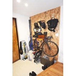 1階スペースには、趣味のものを楽しめるよう、広い玄関スペースと駐車場を設けました。 また、2階をリビングにしたことでお家の中も明るく、広く快適に過ごせるお家になりました。