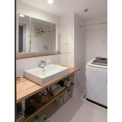 広い洗面カウンターをつけスッキリ、オシャレになりました。