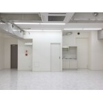 店舗のスケルトンリフォームをしました。壁と天井クロス・床フロア―タイルは白を基調の明るいものを、入口ドアは中が見え、外光が差し込む透明ドアを採用しました。キッチン・トイレは事務所なので、シンプルなものを設置しました。