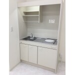 事務所のキッチンなので、シンプルでコンパクトなキッチンを採用しました。ちょっとしたお湯の使用に便利な電気温水器を、キッチン下の収納に配置しました。