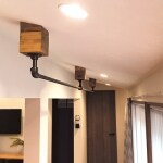 外干しはNGという奥様のために、以前縁側があった場所に室内用物干しを取り付けました。 屋根の勾配を利用して、端材を組み合わせて作ったオリジナルで、お家のイメージにマッチしています。 洗濯干し・取り込むのも直線で移動でき、洗濯機、クローゼットからのアクセスもしやすくなりました。
