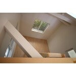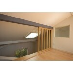 天窓とロフトの採光窓からの光で、とても明るいお部屋に仕上げました。 アクセントクロスで、ポップな印象のお部屋に。 ロフトには落下防止の縦格子を設置。採光の邪魔をせず、お部屋のデザイン性にも貢献します。 天井の高いお部屋なので、開放感抜群です。