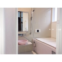 | その他採用機器・設備 | 浴槽:FRP・セミスクエア浴槽・高断熱仕様・ピンク エプロン:樹脂・ピンク カウンター:樹脂・ベージュ 水栓:サーモ水栓・樹脂ホース 洗い場:FRP保温材あり・ホワイトグレー 浴室パネル:高品位ホーロー・パールベージュ 換気扇・浴室乾燥暖房機 窓枠:窓枠フリー(樹脂) ドア:キープクリーンw70cm・間柱対応・ホワイト |