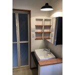 造作カウンターで深底の洗面器を使用し、オシャレな収納ミラーとニッチを提案させて頂きました。