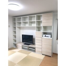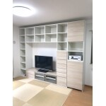リビングに、本・テレビ・ビデオ機などをまとめて収納できる棚を設置したい。壁一面に収納棚を作りたいが、リビングには琉球畳の上になるので可能かどうか。