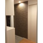 ドアシートを張り、フロア―タイルを張替え、靴収納取付など、全体的にリフォームしたので、玄関が一新しました。全体的に落ち着いた色合いにして、ガラリと変身しました。