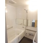 LIXIL リノビオVシリーズ1317にお取替え。 隣にあったトイレのスペースを利用して、シャワールームからユニットバスに変更しました。 石目調ホワイトのホワイトストーン色のパネルで明るくスタイリッシュな浴室に。浴槽は大理石のような上質な光沢と華やかなきらめきをまとう人造大理石浴槽です。