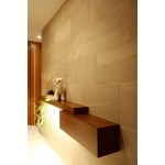 玄関正面の壁は、広さを生かして、大判タイル(エコカラット)を貼りました。エコカラットはデザイン性だけでなく、調湿・脱臭効果などの機能もあり、玄関やペットとお暮しのお宅ににおすすめです。