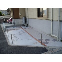 今回、「駐車スペースの整備をしたい」との見積依頼を頂きましたので、 お客様の御希望を伺いながら御提案をし、コンクリート・煉瓦・ロッキング材を 組み合わせた形で仕上げました。 仕上げ材も重要ですが、今回の工事では、敷地と前面道路との傾斜が問題と なりました。この点については、工事前と工事中にも打ち合わせ・確認作業をして 頂くことで、より良い納まりになりました。